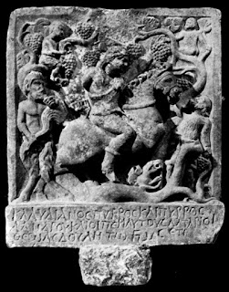 | Оброчна плочка на бог Асдулес от Мелник, 214 г. сл. Хр. Епитет на Тракийския конник в синкретизъм с Дионис |