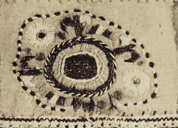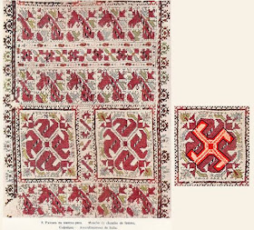 | Лява и дясна свастика от пола на женска риза от 19 век. |